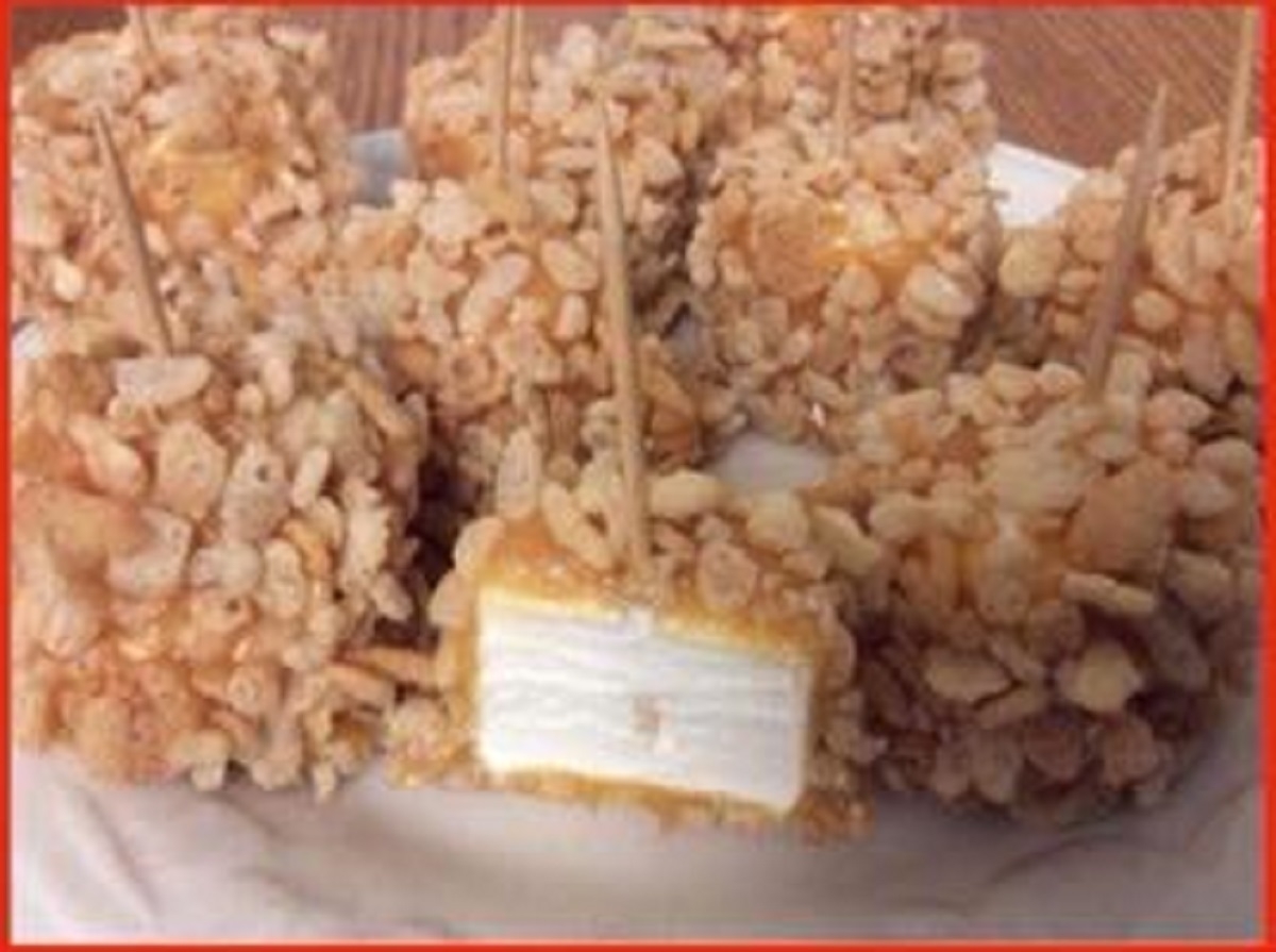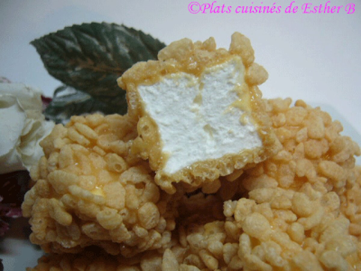 Ingrédients: 1 eagle brand. ½ tasse de beurre. 4 barres toffee. Guimauves (grosses) Rice krispies. Préparation : -Faire fondre les 3 premiers ingrédients au bain marie. -Rouler chaque guimauve dans la préparation fondue et dans les rice crispies par la suite.