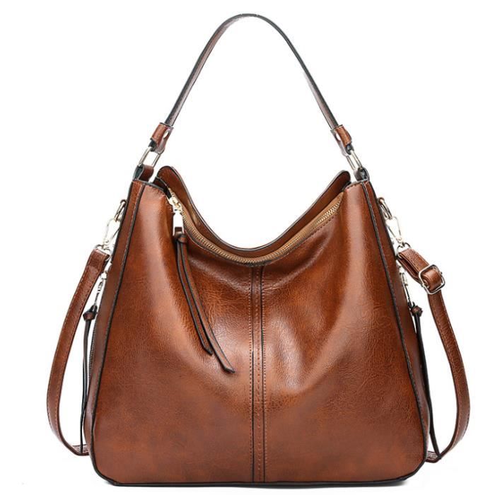 Sac a Main Femmes Cuir Grand Capacité Sac Bandoulière Femme PU Synthétique FourreTout Marron
