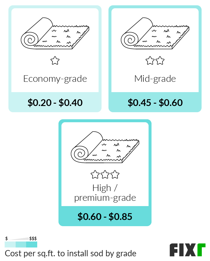 In April 2024 the cost to Install Sod starts at $2.01 - $3.33 per square foot*. Use our Cost Calculator for cost estimate examples customized to the location, size and options of your project. To estimate costs for your project: 1. Set Project Zip Code Enter the Zip Code for the location where labor is hired and materials purchased. 2.